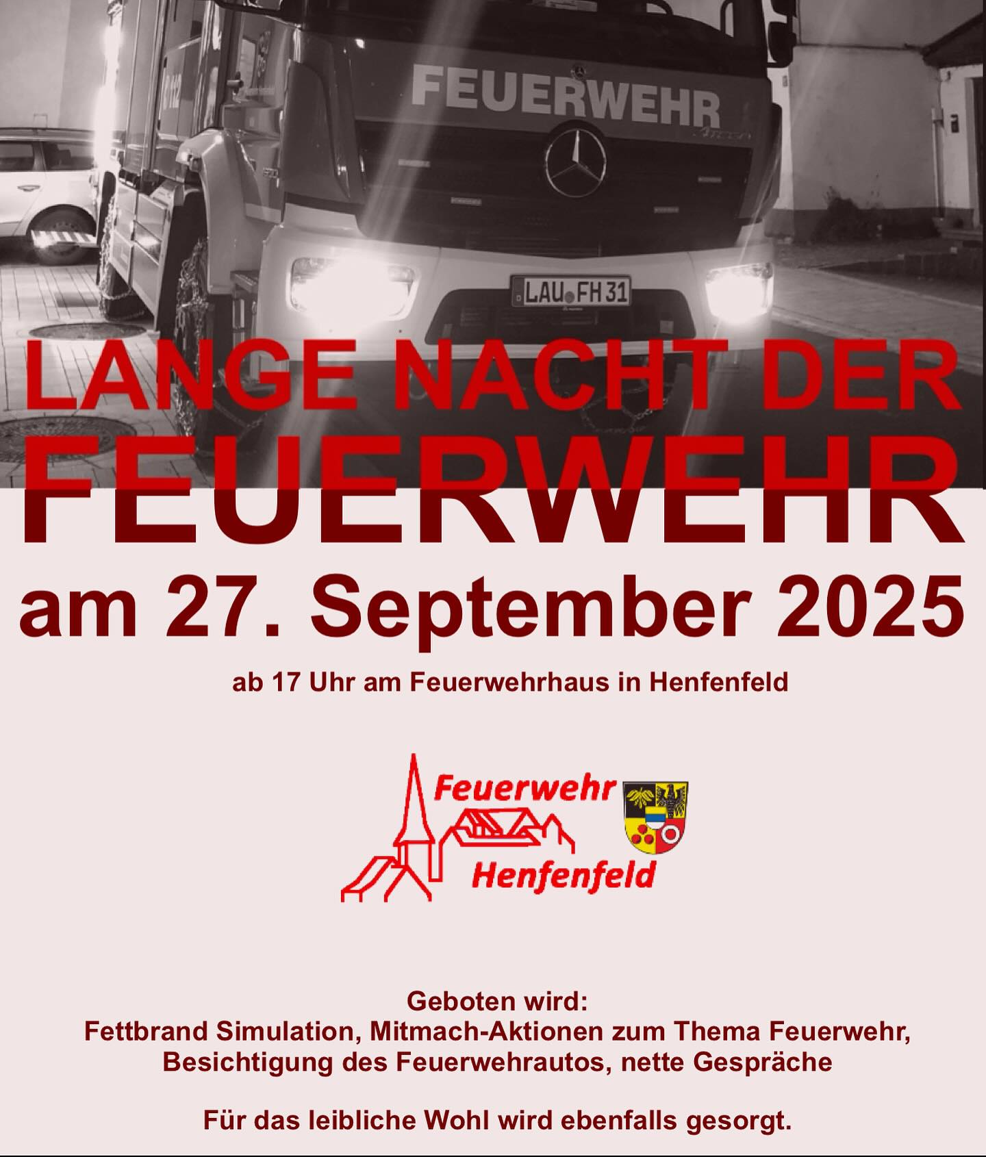 Diese und weitere Informationen erhältst du bei der langen Nacht der Feuerwehren am 27.09.2025 ab 17 Uhr am Gerätehaus der Feuerwehr Henfenfeld in der Mittelgasse.